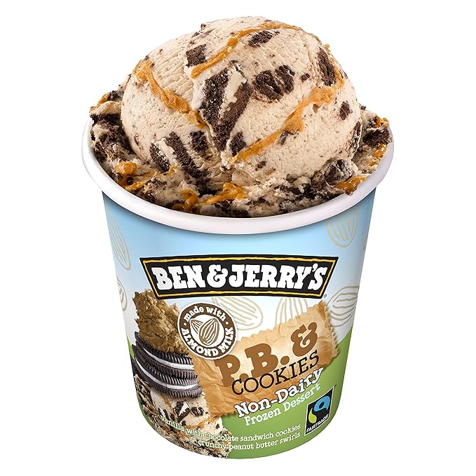 Ben Jerry S Non Dairy Frozen Dessert Non Gmo Fairtrade 100 Certified Vegan Made With Almond Milk Responsibly Sourced Packaging P B Cookies Pint 8 Count Amazon Com Grocery Gourmet Food