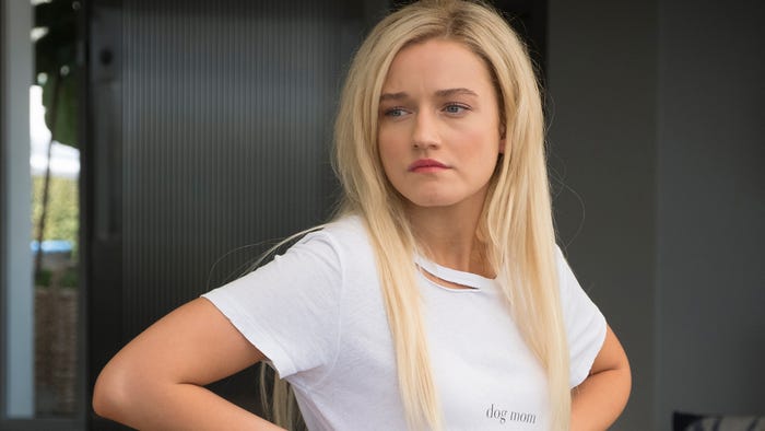 Wornontv Terra S White Dog Mom Distressed Tee On Dirty John Julia Garner Clothes And Wardrobe From Tv