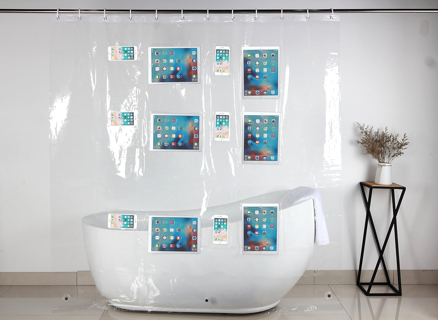 Clear Shower Curtain Liner With 12 Touch Pockets For Ipad Phone Tablet Baby Monitor Watch Movies Tv Shows Netflix Youtube Play Games Music 100 Waterproof Eco Friendly With 12 Free
