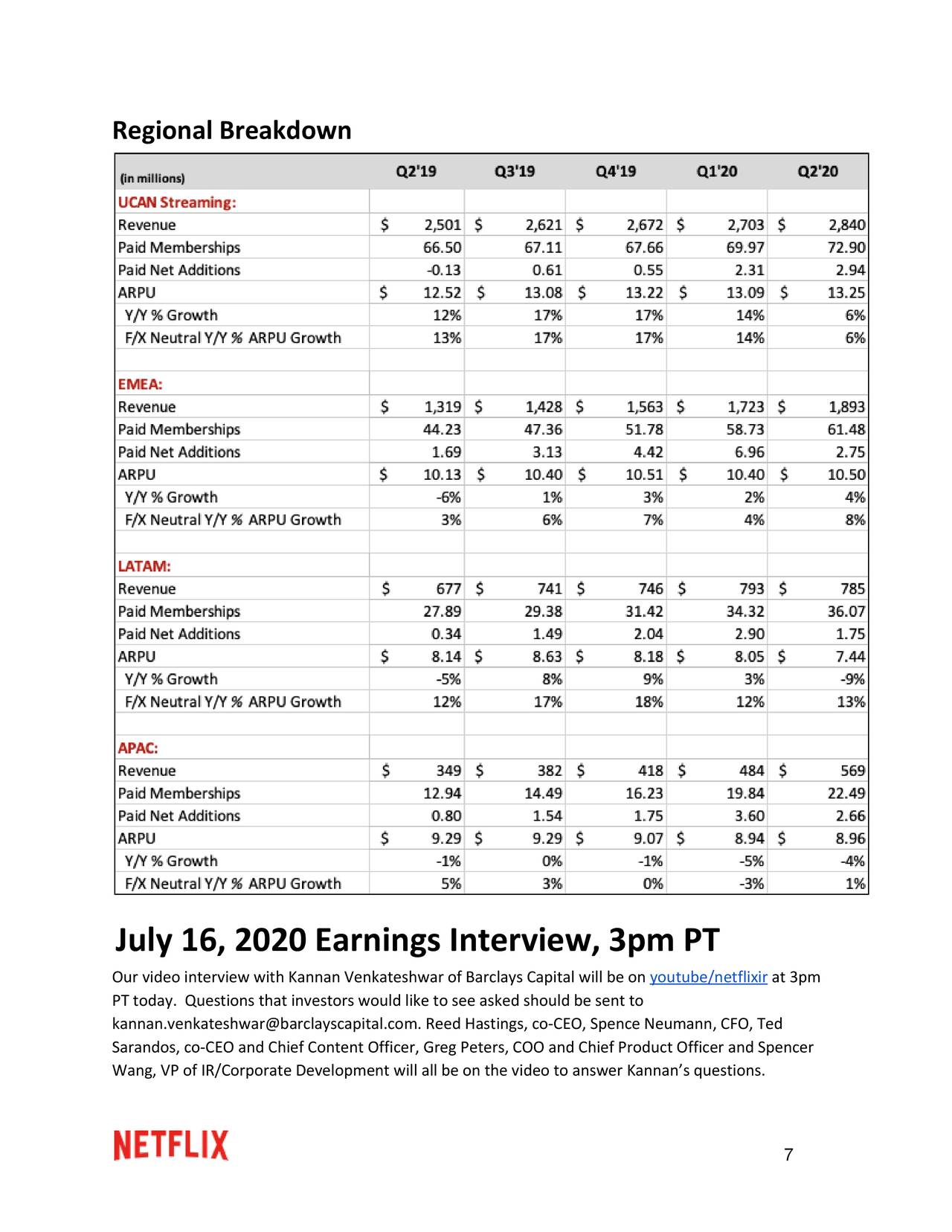 Kannan venkateshwar barclays capital analyst. Nflxq2 2020 earnings calljul 16 2020 600 pm. Netflix held its q2 2020 virtual earnings interview on july 16.