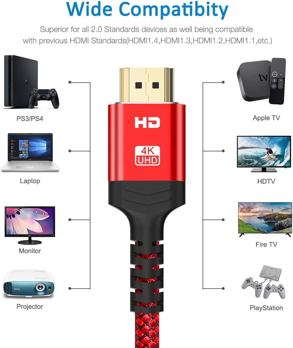 Amazon Com 4k 60hz Hdmi Cable Highwings 6 6ft 2m 18gbps High Speed Hdmi 2 0 Braided Cord Supports 4k 60hz Hdr Video 4k 2160p 1080p 3d Hdcp 2 2 Arc Compatible With Ethernet Monitor Ps 4 3 Hdtv 4k Fire Netflix