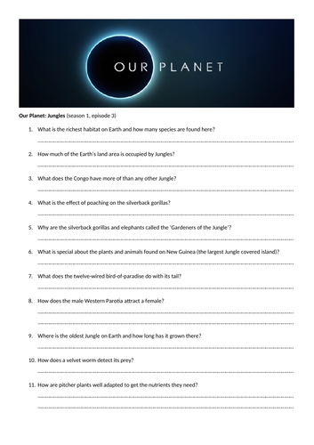 Our Planet Jungles Netflix Video Questions Worksheet Word Search Jumble