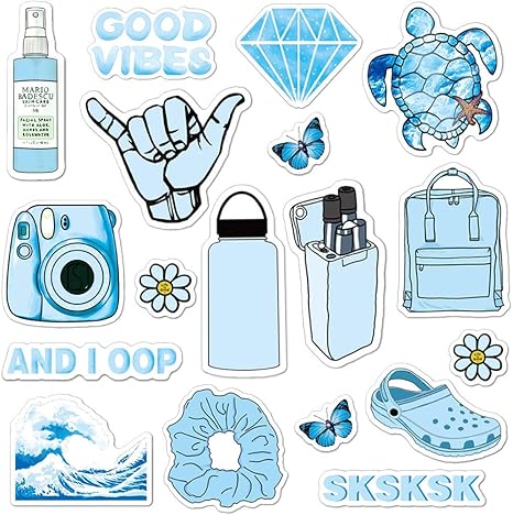 Vsco Girl Hydro Flask 50 Pcs Cartoon Blue Stickers Waterproof Sticker Skateboard For Sale Online Ebay