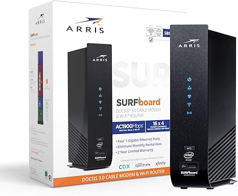 Amazon Com Arris Surfboard 16x4 Docsis 3 0 Cable Modem Plus Ac1900 Dual Band Wi Fi Router Certified For Xfinity Spectrum Cox More Sbg6950ac2 Black Computers Accessories